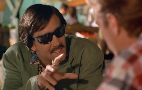 Though the story itself could have been good fun if turned into a slick little thriller that would require someone who actually knew how to make a film at the helm. With Cage’s brother Christopher Coppola directing (sadly demonstrating none of the talent of Francis Ford), this film is very much a family affair and yet another depressing demonstration of the nepotism of the insular film industry. It is for this reason that Cage was told he could play the part how the hell he wants, and with a wig, albino contact lenses and a very strange accent certainly does so. Just to further keep things in the family, Marc Coppola turns up as one of the most uncomfortable film extras I have ever seen, he even accidentally looks directly at the camera at one point!