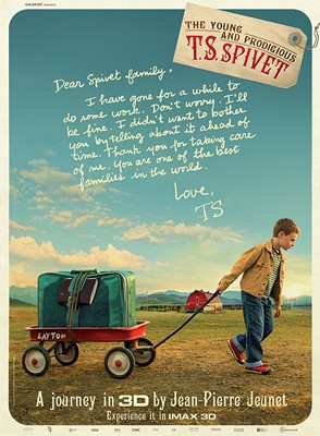 10 year old T.S. (Catlett) lives an isolated life on a ranch in Montana; despite his young years he is obsessed with science and gets a phone call one day from the Smithsonian Institute in Washington saying that his perpetual motion wheel invention has earned him the prestigious Baird prize. Obviously thinking him to be an adult, they invite T.S. to make a speech and collect his award at a reception in his honour. Leaving without telling his family, T.S. jumps on a cargo train and embarks on the adventure of a lifetime across America to Washington D.C.