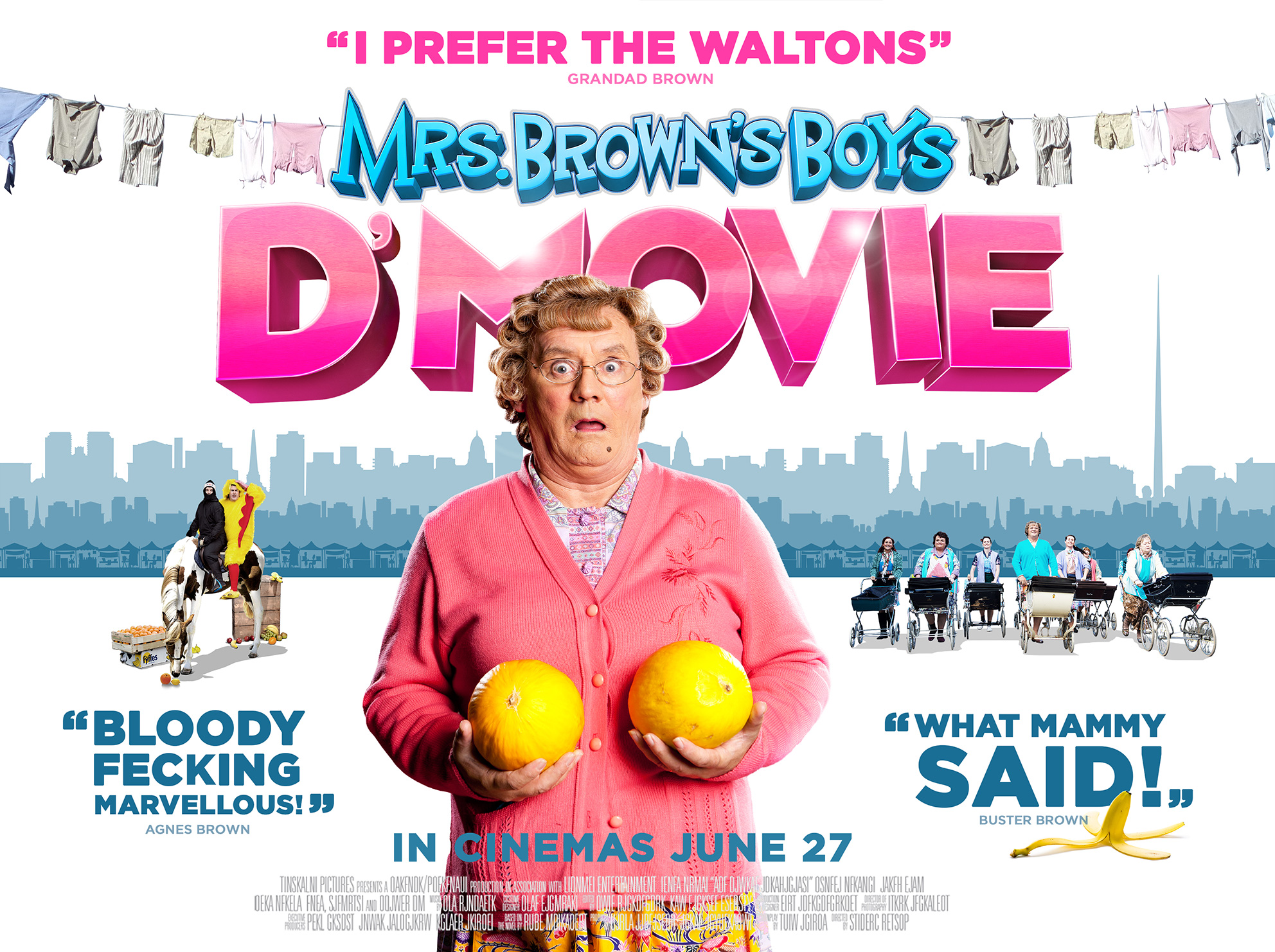 For reasons that are most certainly beyond me, Mrs. Brown’s Boys is an incredibly popular TV series and so for that reason a big screen version was always going to be inevitable. Love it or hate it (I hate it), each 28 minute episode of the TV series is a quick fire succession of lowest common denominator gags, but they do come at a rapid rate. However, with Mrs. Brown’s Boys D’Movie the challenge of sustaining that for 95 minutes while incorporating all the narrative necessities required for a feature length running time has proves Brendan O’Carroll and his family to be very much out of their depth.