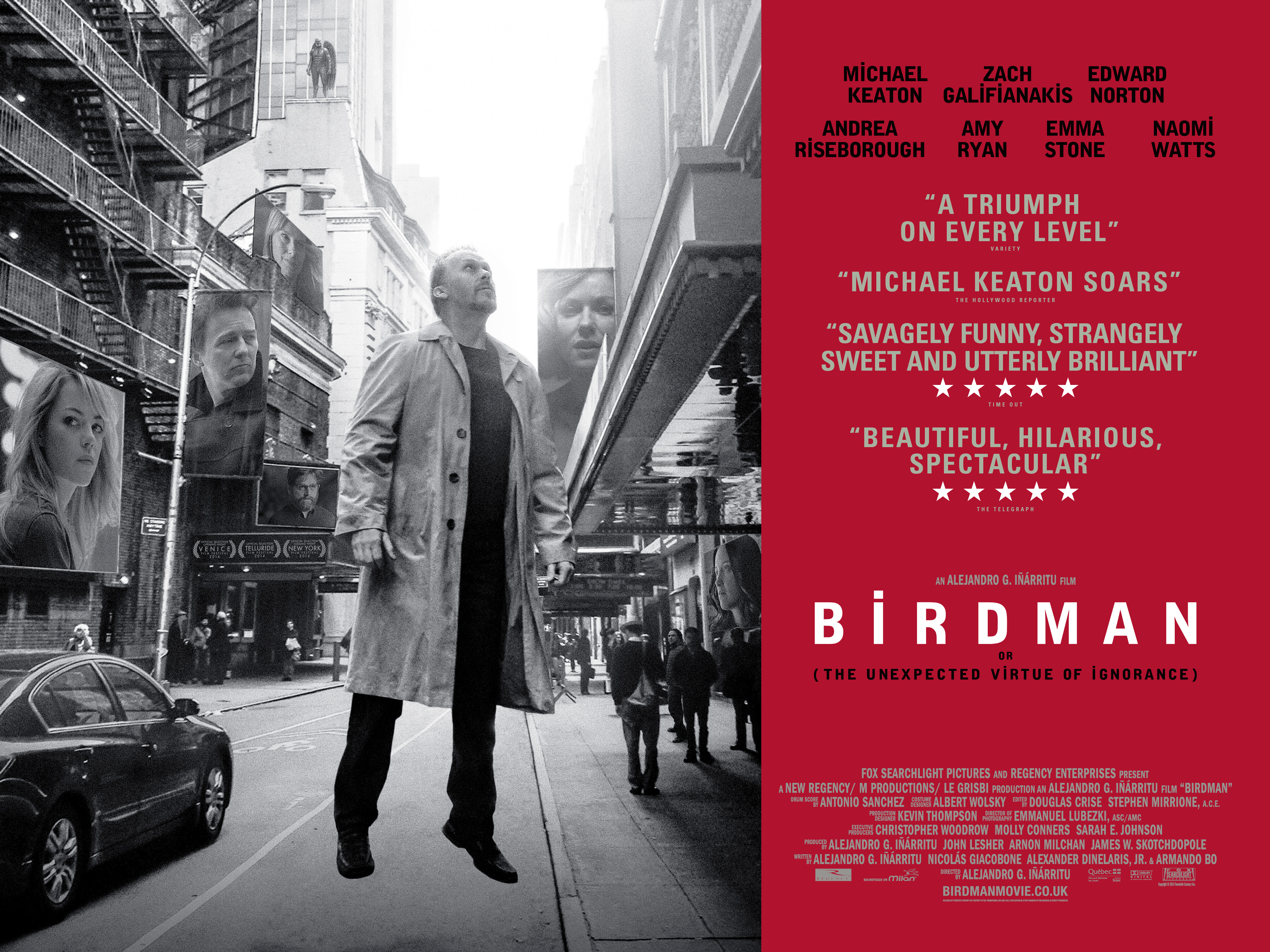 A cinematic masterpiece that works on so many levels; Birdman or The Unexpected Virtue of Ignorance (the latter is a less marketable but more appropriate title) is deeply intelligent and highly creative film making of the highest order.
