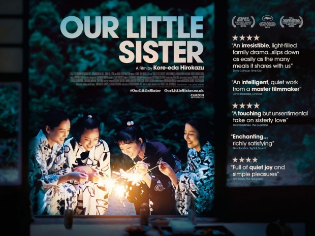 Sisters Sachi (Ayase), Yoshino (Nagasawa) and Chika (Kaho) have lived together in their late grandparents’ house all their lives, and ever since both their father and then soon after their mother left them, the oldest sister Sachi has had to be the matriarch of the house. After learning of the death of their estranged father they attend the funeral and meet their 14 year old half-sister Suzo (Suzo Hirose), and in the knowledge that there is now no one to look after Suzo, Sachi asks her to come and live with the three of them, bringing about changes in each ones outlook on life.